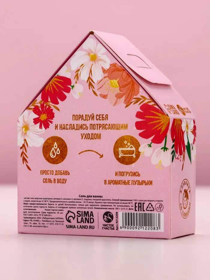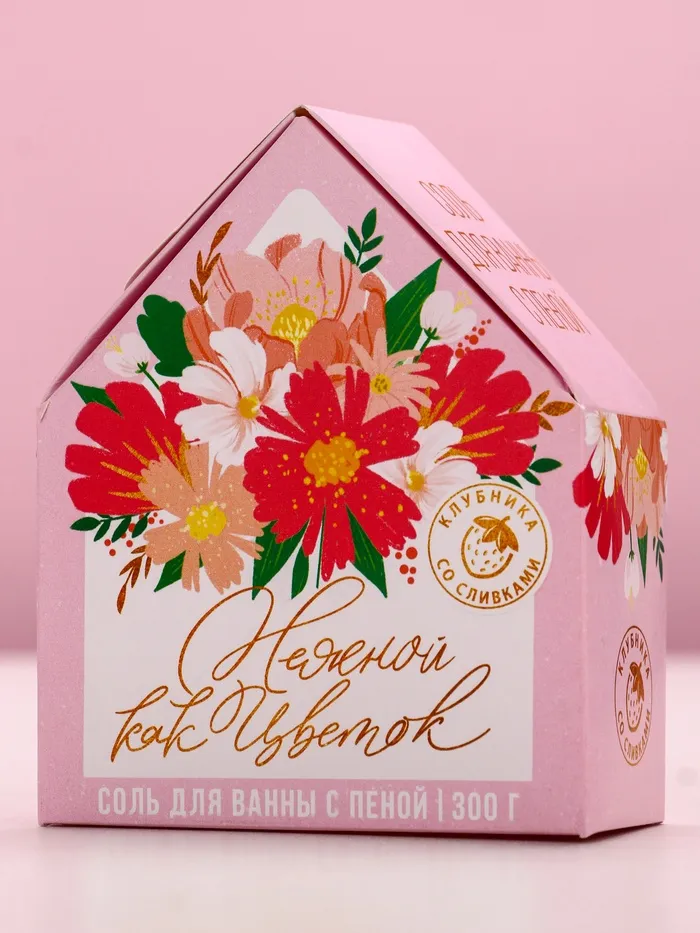 Соль для ванны с сухой пеной «Нежной, как цветок», клубника со сливками — Характеристики