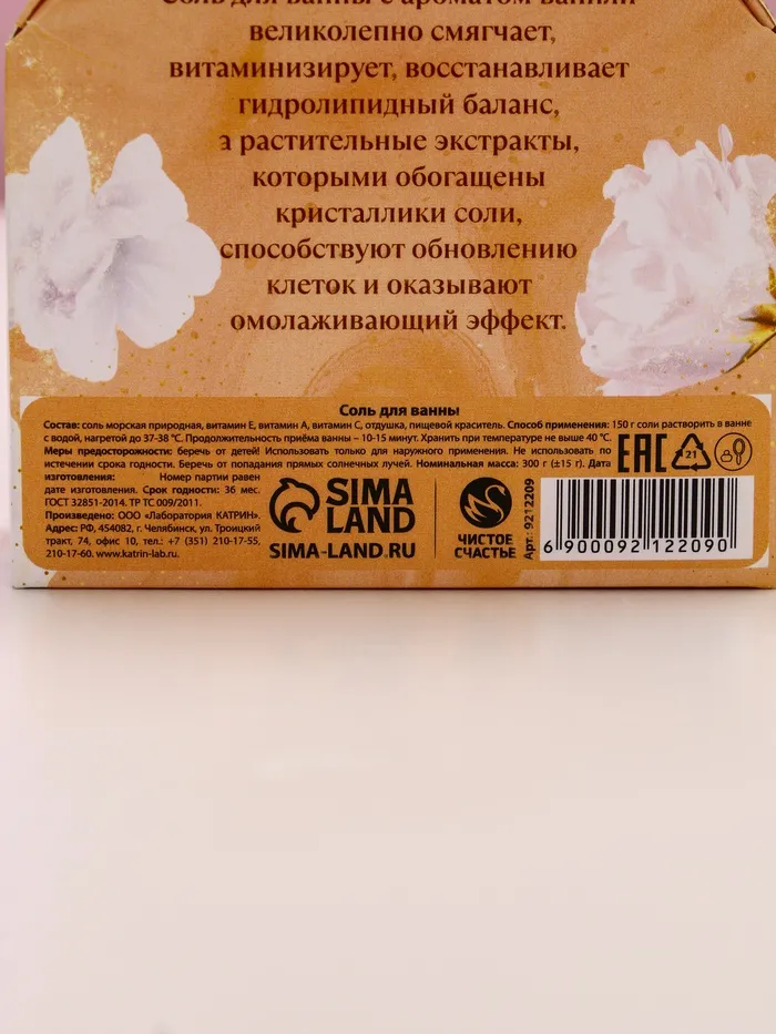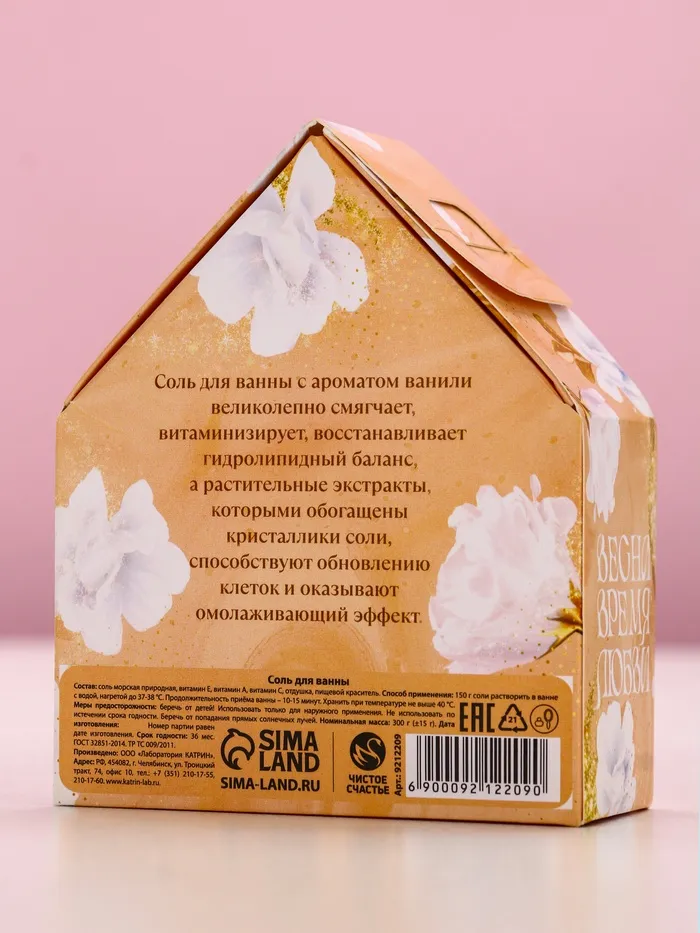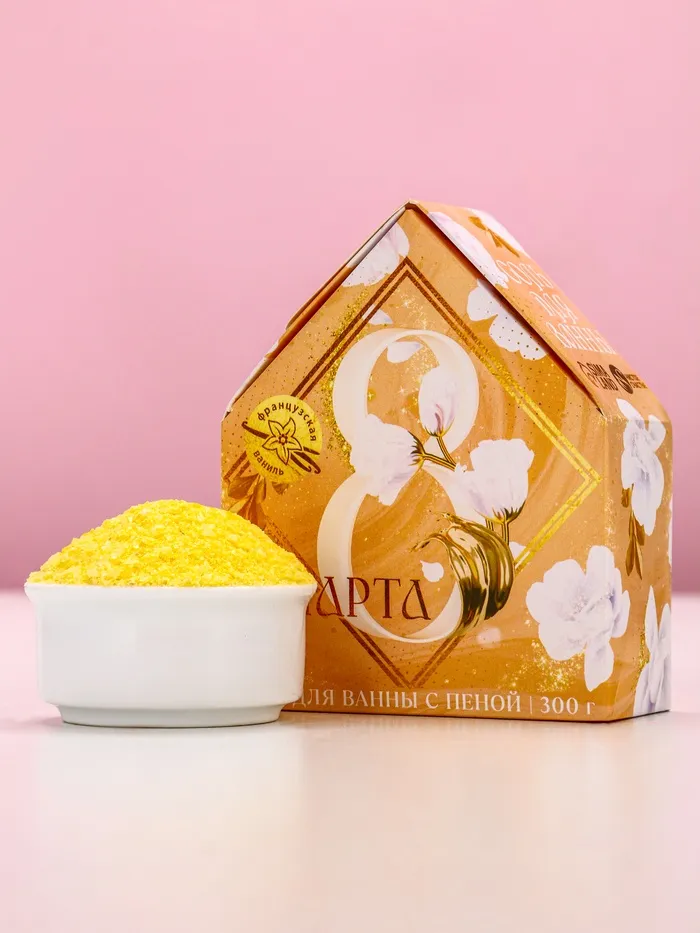 Соль для ванны с сухой пеной «С 8 марта!», французская ваниль — Характеристики