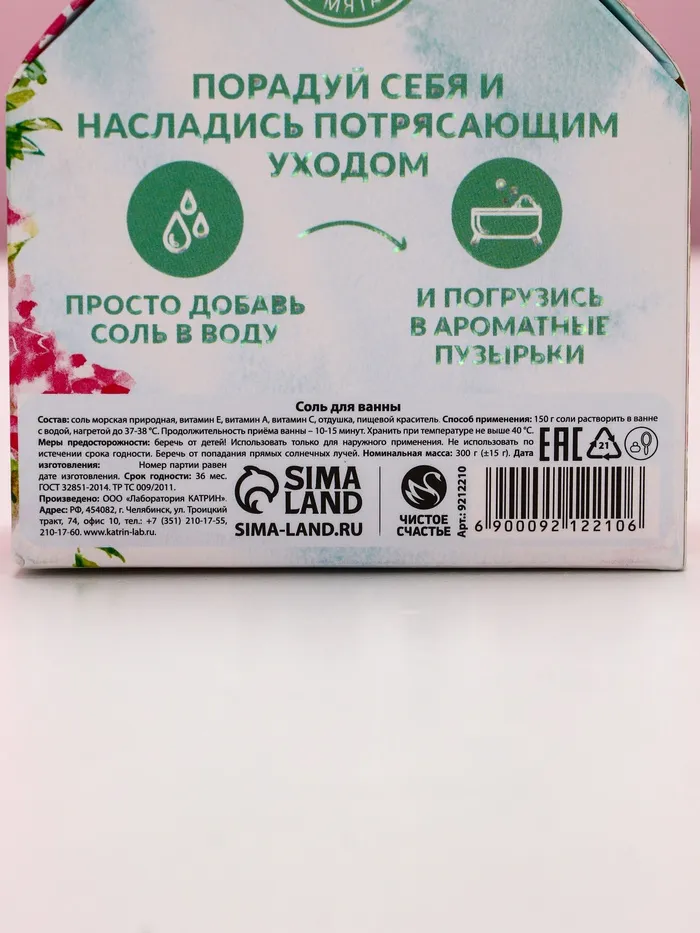 Соль для ванны с сухой пеной «Самой лучшей!», 300 г, аромат шоколада и мяты, Чистое счастье — Характеристики