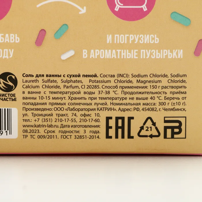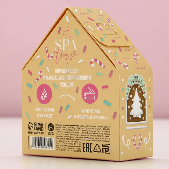 Соль для ванны с сухой пеной «Уютного года», 300 г, аромат шоколада и мяты, Чистое счастье — Характеристики