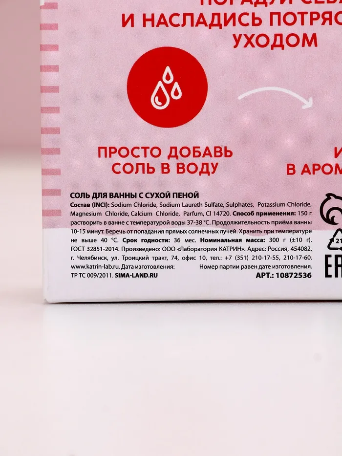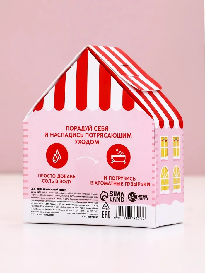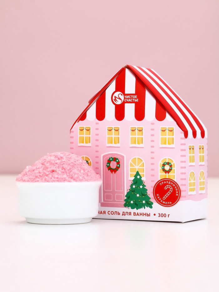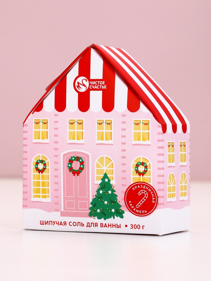 Соль для ванны с сухой пеной «Волшебный домик», аромат: праздничная карамель, 300 г, Чистое счастье — Характеристики