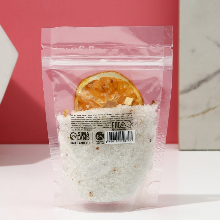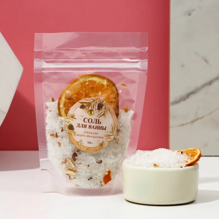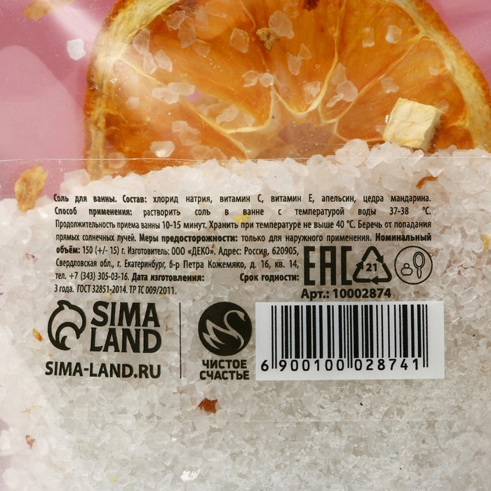 Соль для ванны с цедрой мандарина, можжевеловой ягодой и календулой, 150 г, ЧИСТОЕ СЧАСТЬЕ — Характеристики