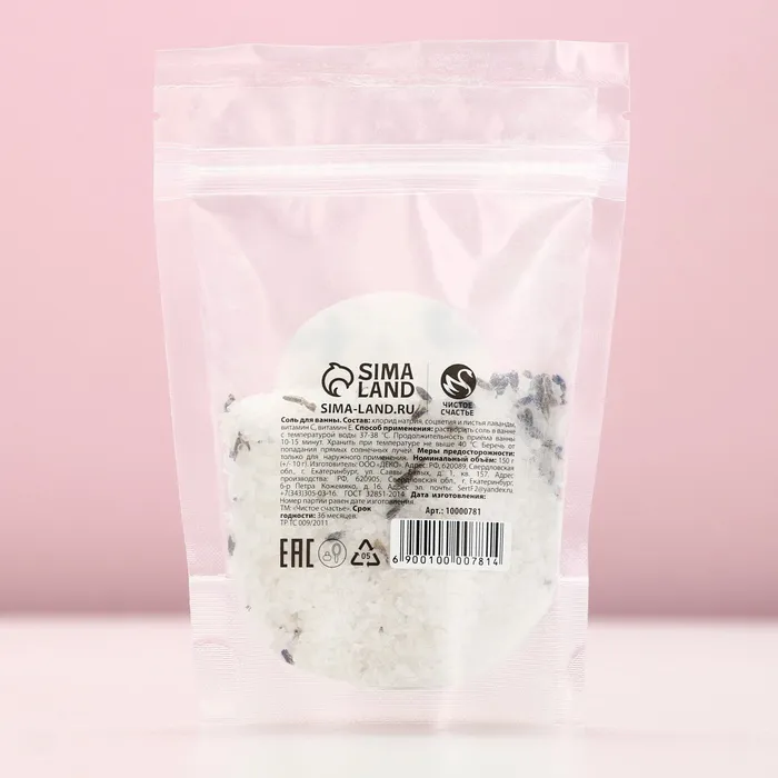 Соль для ванны с цветами горной лаванды, 150 г, Чистое счастье — Характеристики