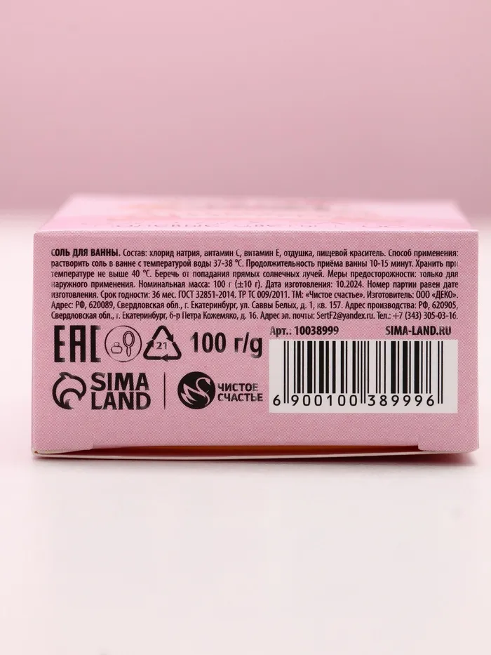 Соль для ванны «Счастья в каждом дне», 100 г, аромат полевых цветов — Характеристики