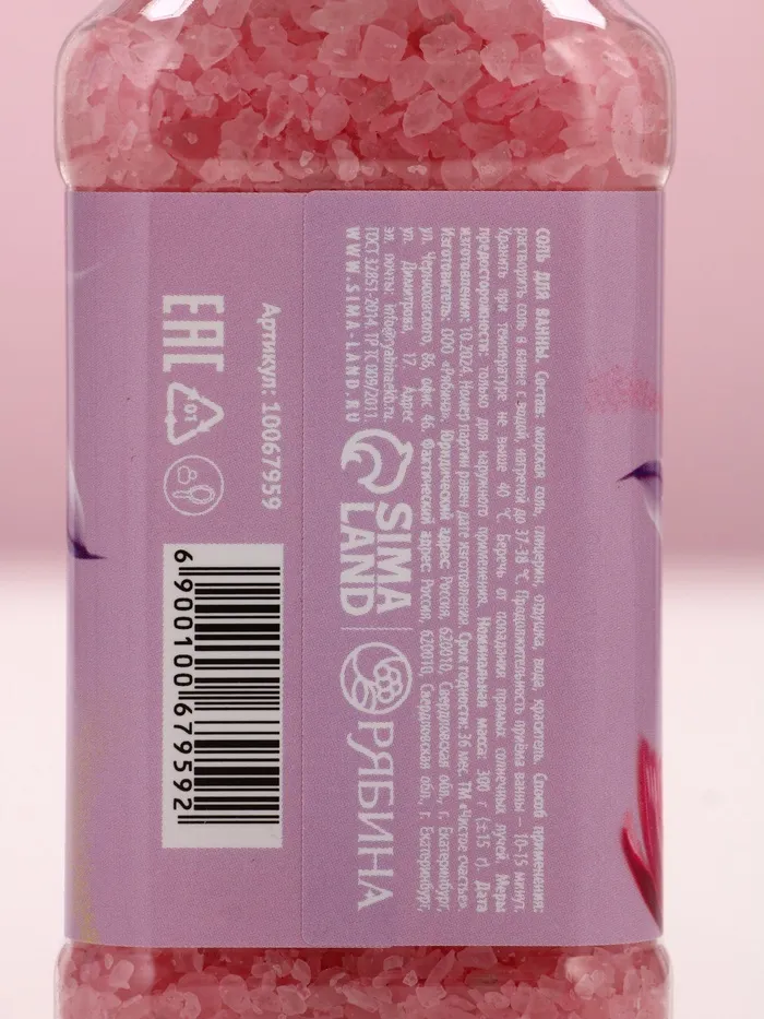 Соль для ванны «Сияй!», 300 г, аромат нежной лаванды, Чистое счастье — Характеристики