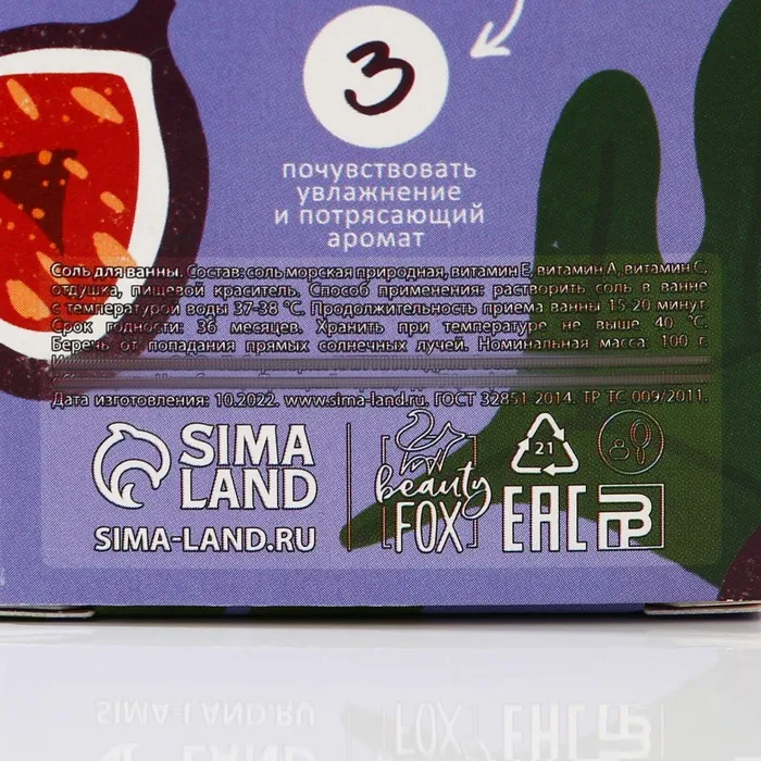 Соль для ванны «Сладкий инжир», 100 г, BEAUTY FOX — Характеристики