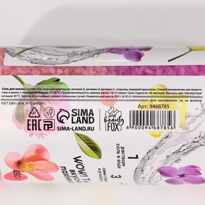 Соль для ванны «Цветочное настроение», 650 г, BEAUTY FOX — Характеристики