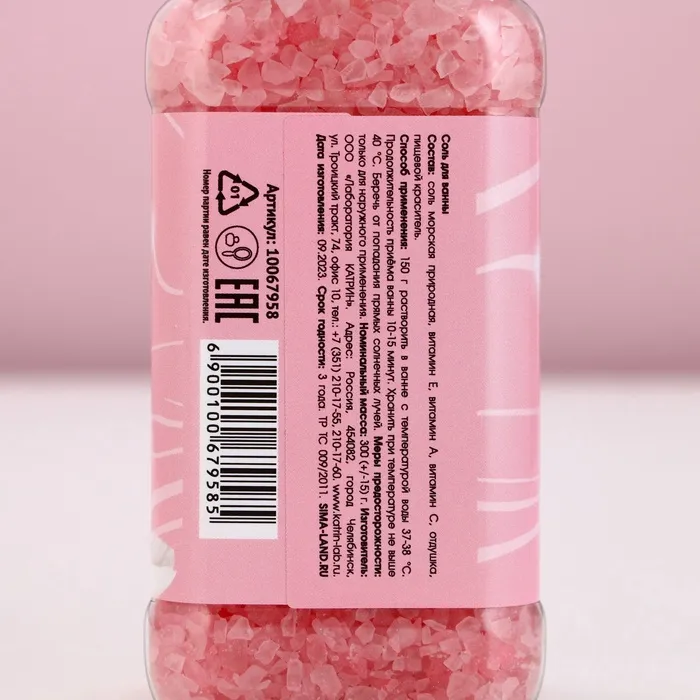Соль для ванны «Ты чудесна!», 300 г, аромат клубники со сливками, Чистое счастье — Характеристики