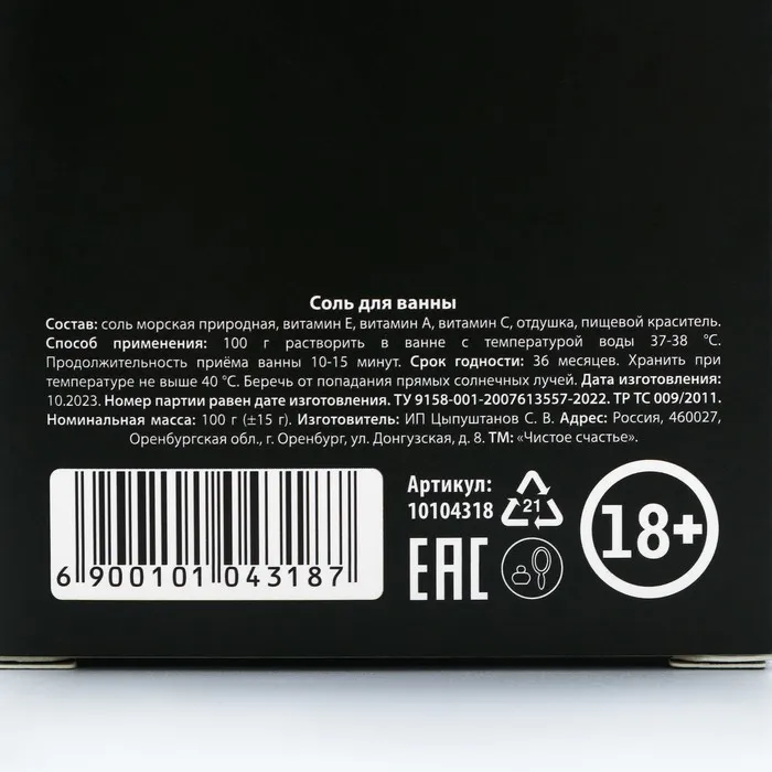 Соль для ванны «Ты обвиняешься», 100 г, аромат дикой вишни, 18+, Чистое счастье — Характеристики