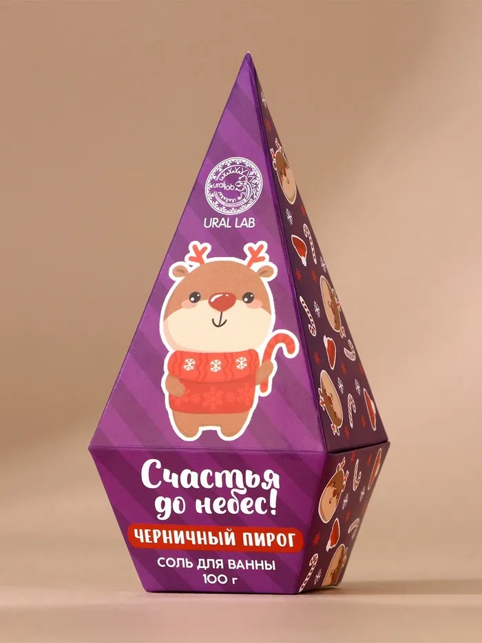 Соль для ванны URAL LAB «Счастья до небес!», 100 г, аромат черничного пирога, Новый Год — Характеристики