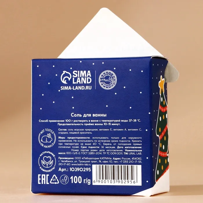 Соль для ванны URAL LAB «Уютной зимы», 100 г, аромат мятной жвачки, Новый Год — Характеристики