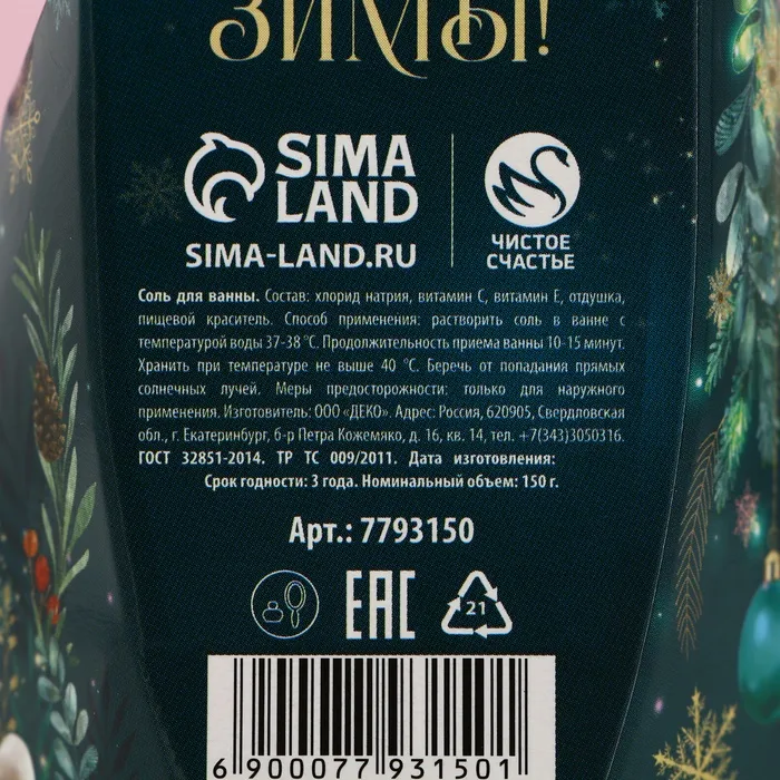 Соль для ванны «Верь в чудеса!», 150 г, аромат яблока, Чистое счастье — Характеристики
