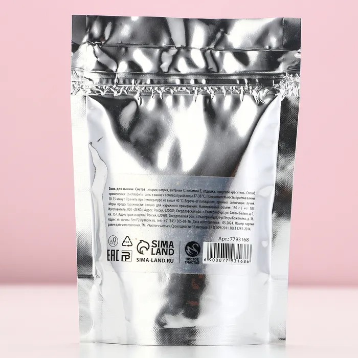 Соль для ванны «Верь в чудеса», 150 г, аромат ванили и молока, Чистое счастье — Характеристики