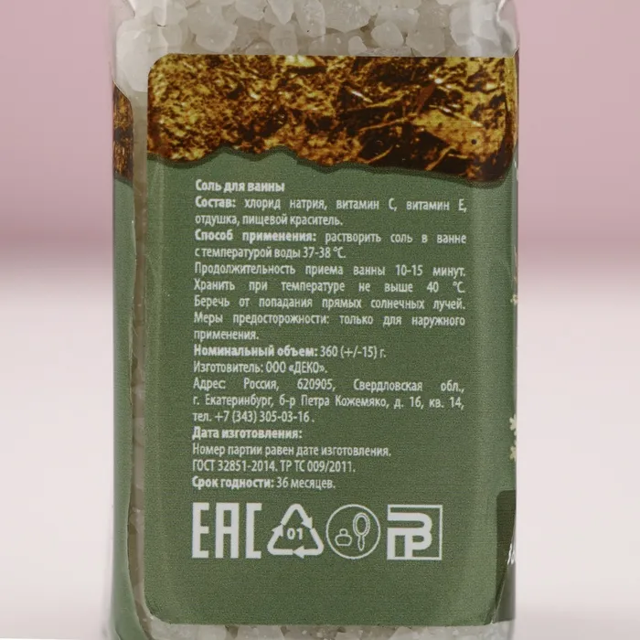 Соль для ванны «Верь в чудеса», 360 г, аромат миндаля, Чистое счастье — Характеристики