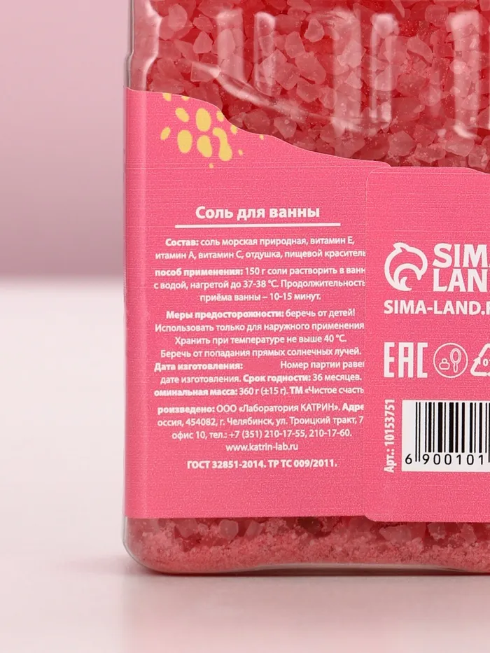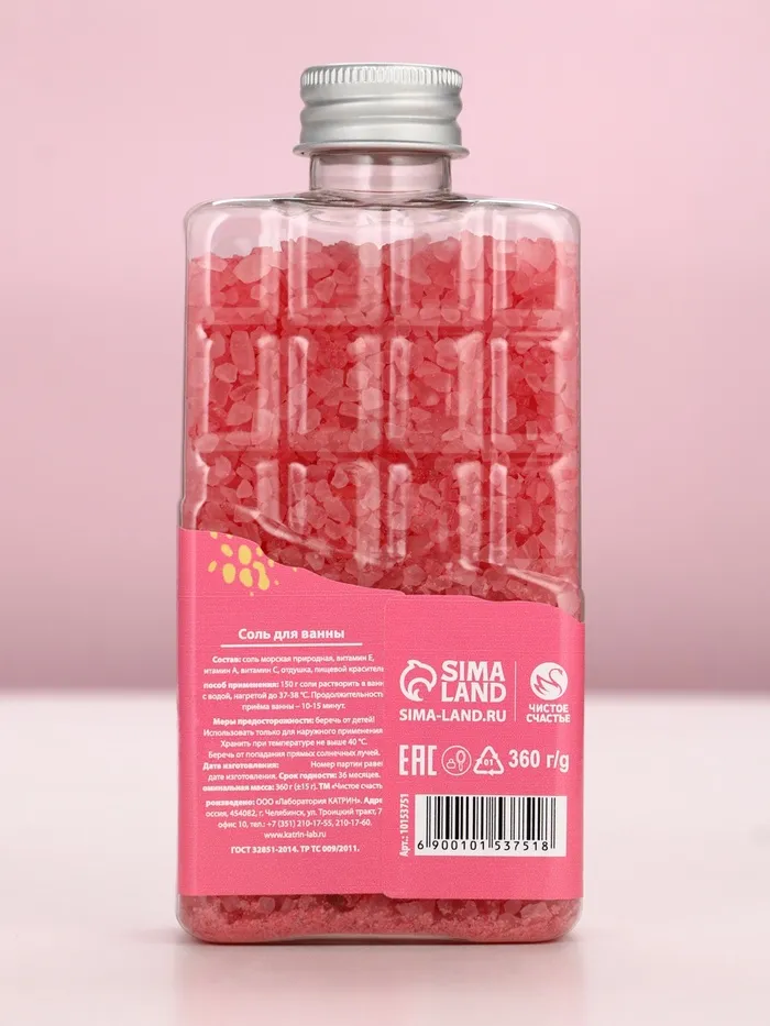 Соль для ванны во флаконе шоколад «Ярких моментов!», аромат пина колада, 360 г, Чистое счастье — Характеристики