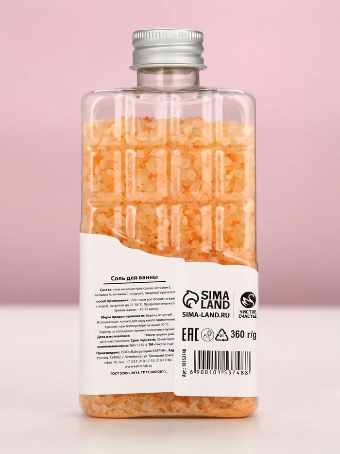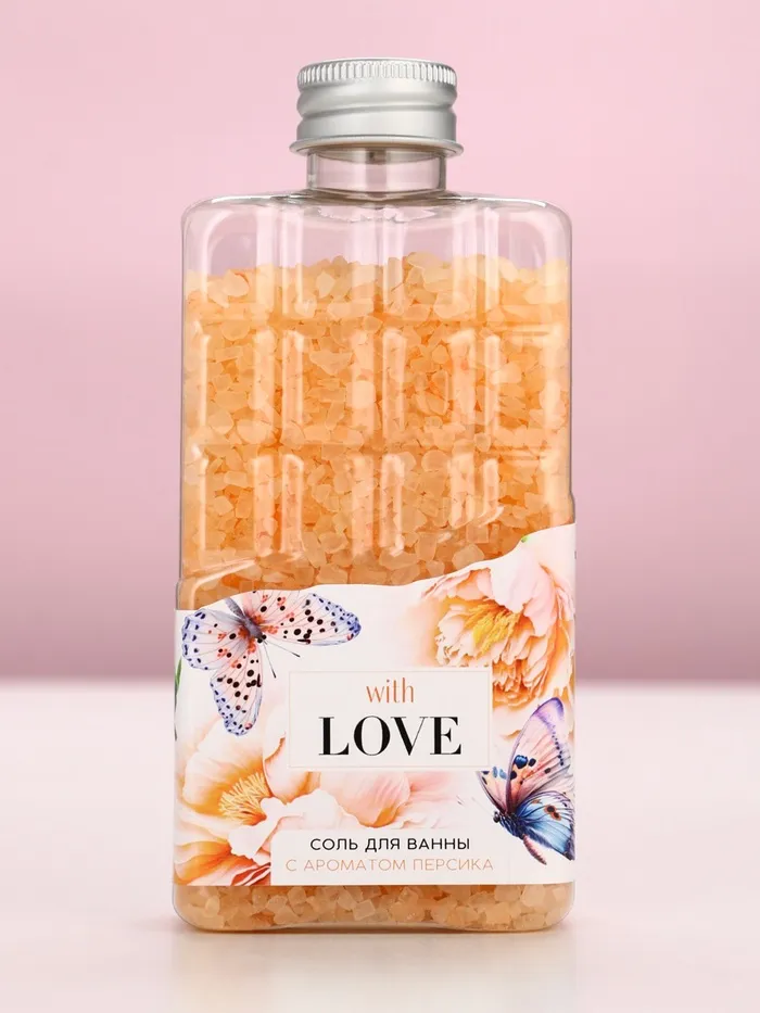 Соль для ванны во флаконе шоколад «С любовью», аромат персика, 360 г, Чистое счастье — Характеристики