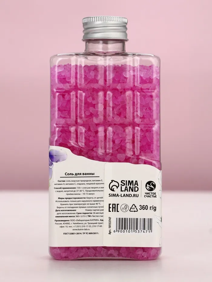 Соль для ванны во флаконе шоколад «Время для себя», аромат ванили, 360 г, Чистое счастье — Характеристики