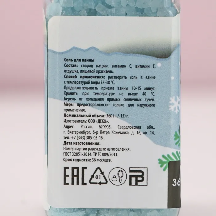 Соль для ванны «Время чудес», 360 г, аромат жасмина, Чистое счастье — Характеристики
