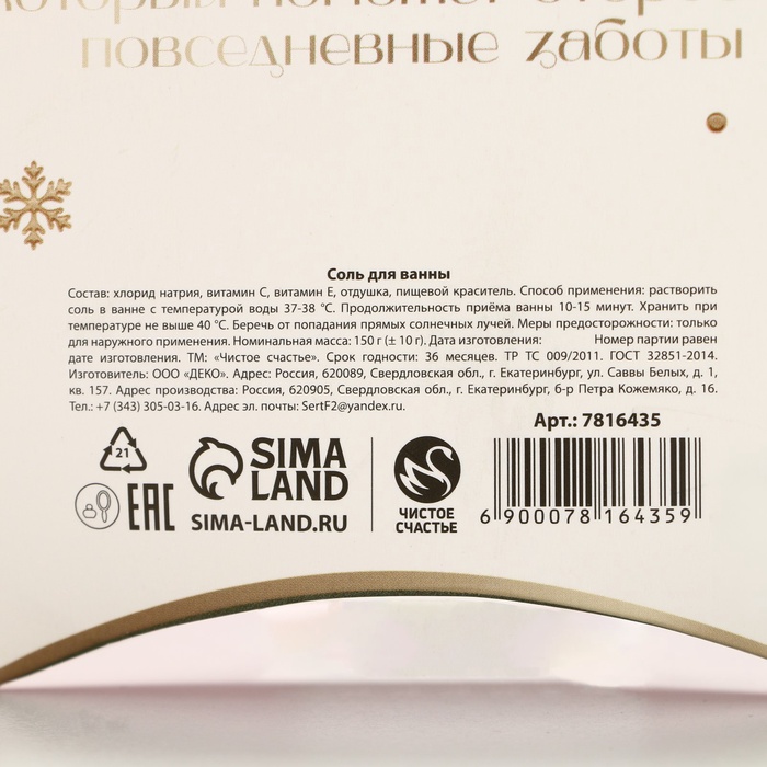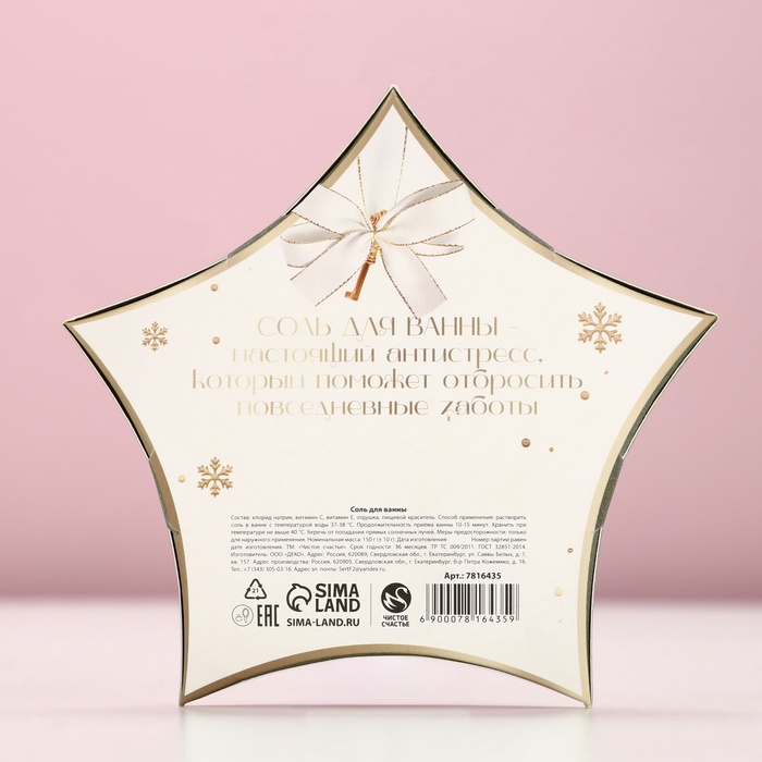 Соль для ванны «Время волшебства», 150 г, аромат ванили и молока, Чистое счастье — Характеристики