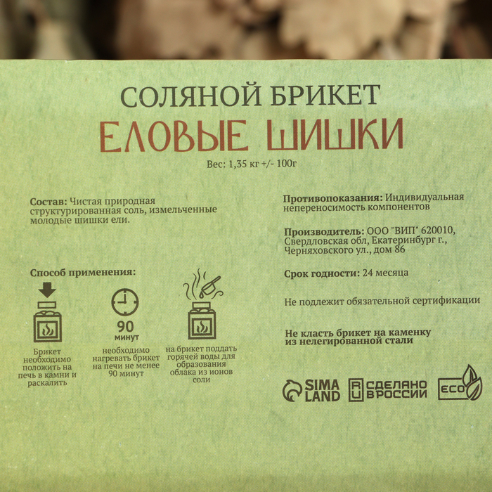 Соляной брикет «Еловые шишки» с алтайскими травами, 1.35 кг «Добропаровъ» — Характеристики