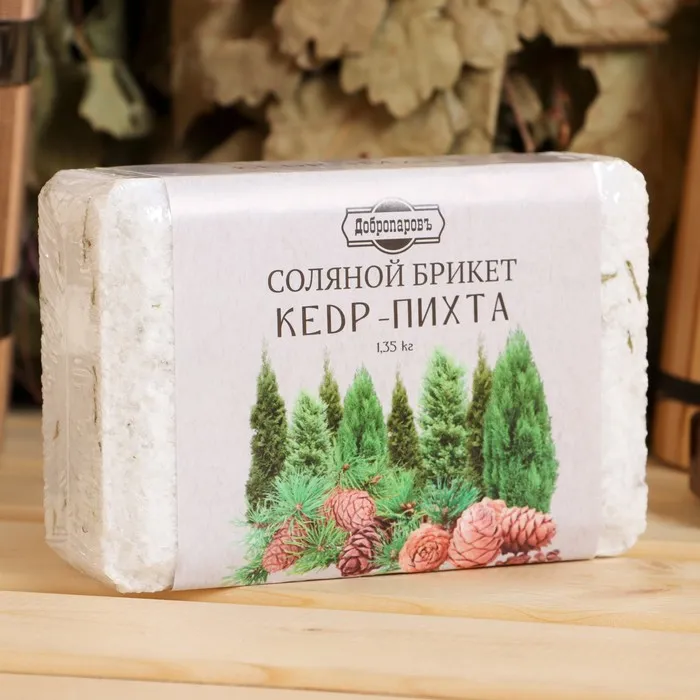 Соляной брикет «Кедр - Пихта» от Добропаровъ — это натуральное средство для создания уникальной атмосферы в бане или сауне. Комбинация целебной морской соли с ароматом хвойного кедра и пихты помогает очистить воздух, создать расслабляющий и оздоровительный микроклимат. Хвоя обладает антисептическими и противовоспалительными свойствами, а соль способствует мягкому пилингу и улучшению кровообращения.