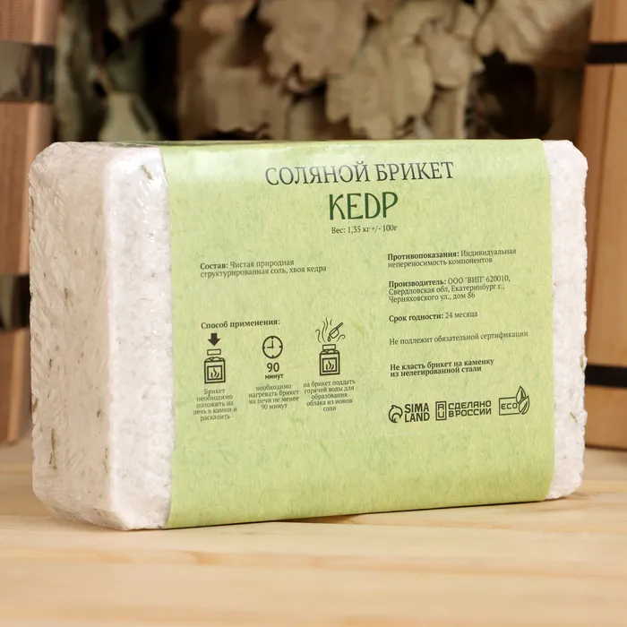 Соляной брикет "Кедр" с алтайскими травами, 1,35 кг "Добропаровъ" — Характеристики