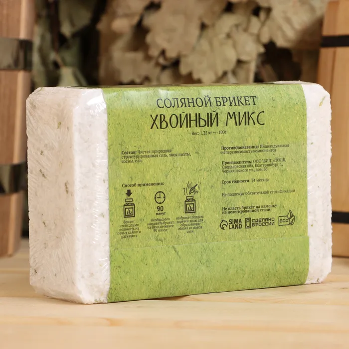Применение: нагревайте брикет на печи не менее 90 минут, затем поддайте на него горячей воды. Соль наполнит воздух бани ионами, тем самым поможет снять усталость, улучшить кровообращение и общее самочувствие.