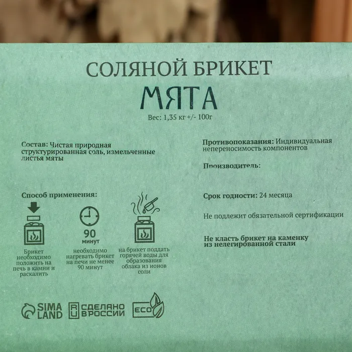 Примечание: Соляные брикеты не содержат отдушек и состоят только из натуральных трав.