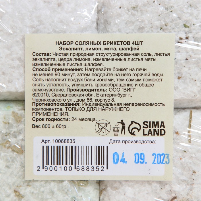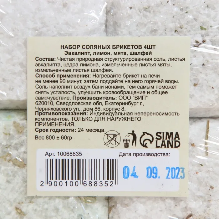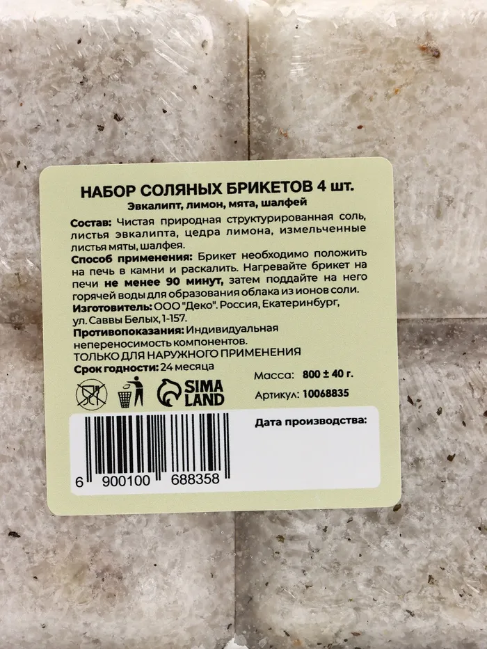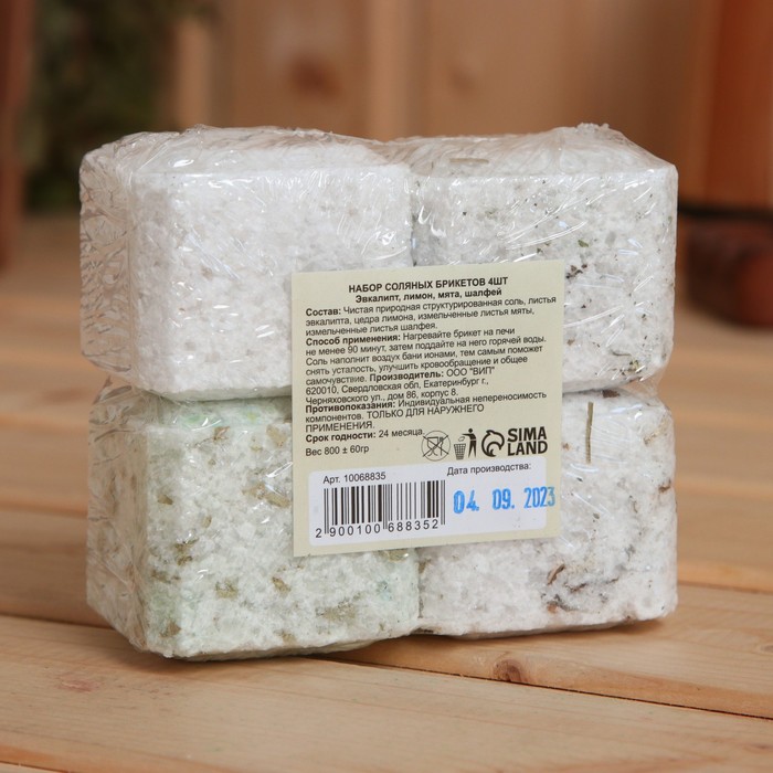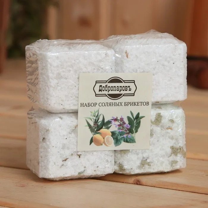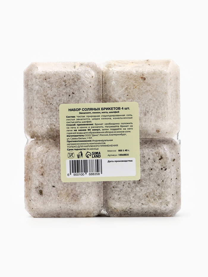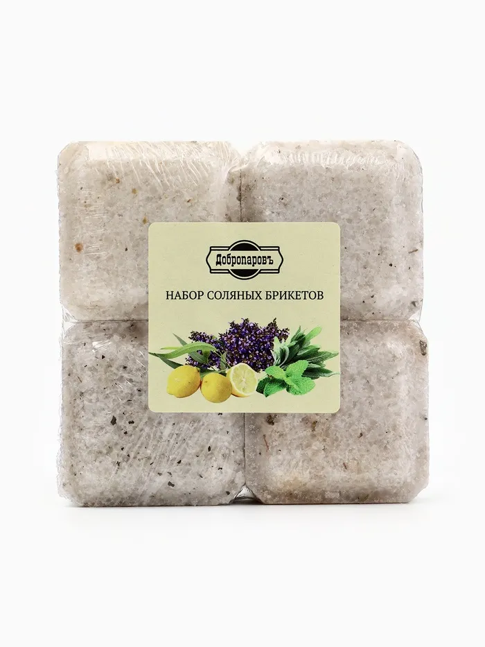Соляной брикет — набор 4 шт. «Эвкалипт, Лимон, Мята, Шалфей» — это гармоничное сочетание пользы гималайской соли и целебных свойств эфирных масел. Каждый брикет весом около 200 г наполняет парную мягким, но насыщенным ароматом, создавая атмосферу природного SPA.