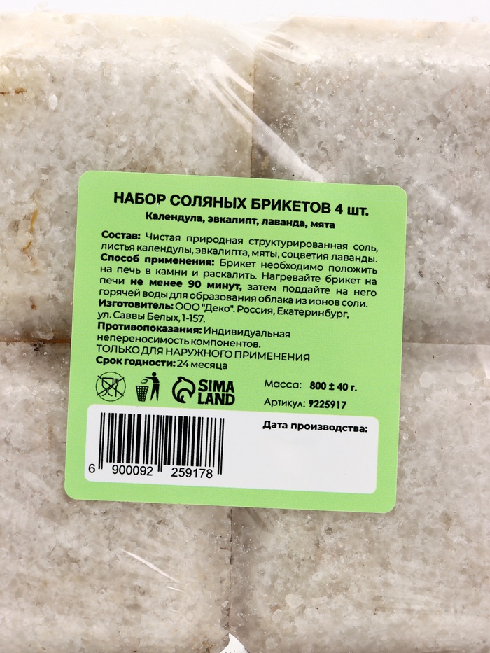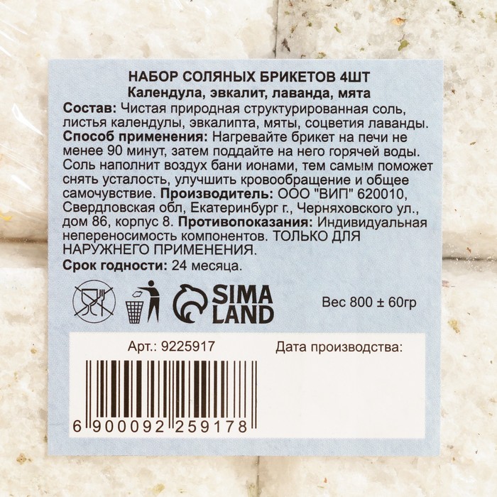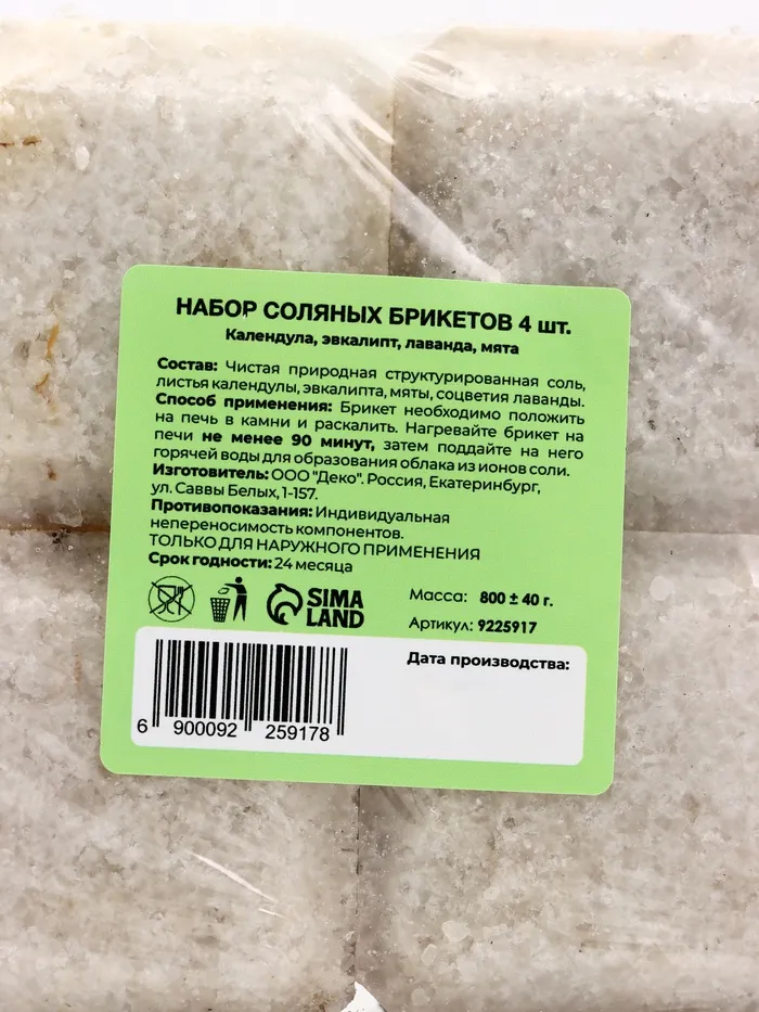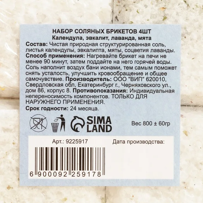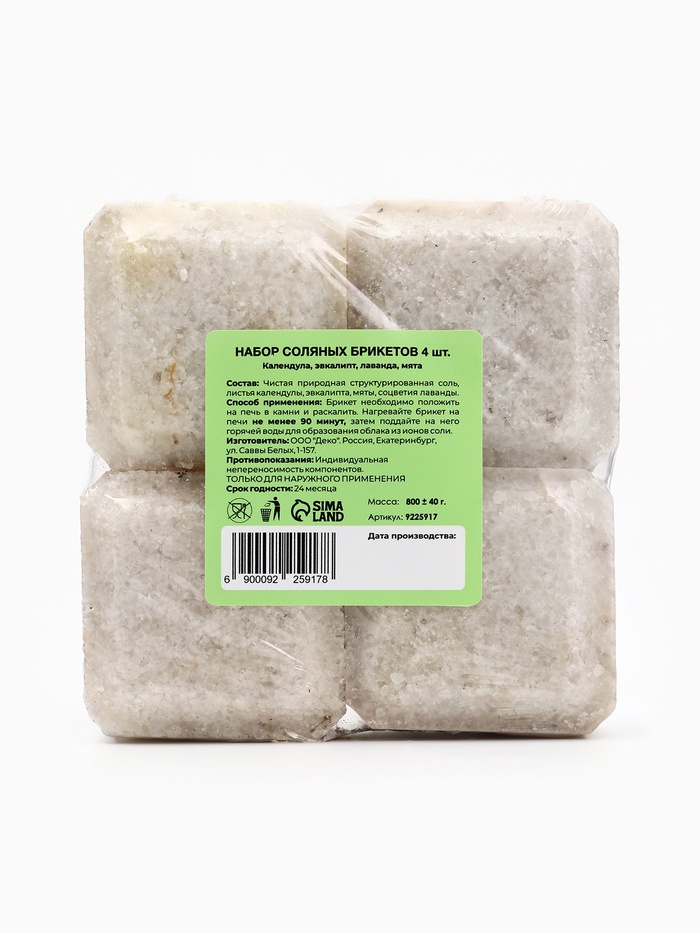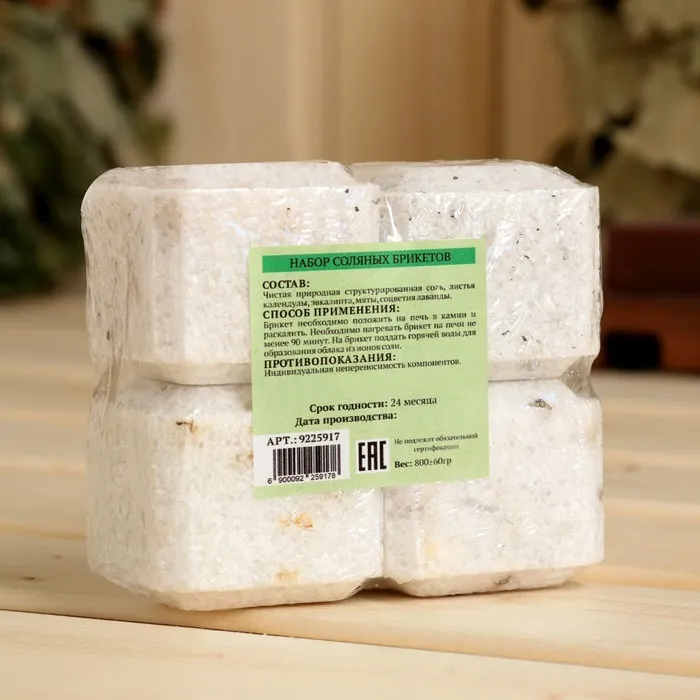 Примечание: Соляные брикеты не содержат отдушек и состоят только из натуральных трав.