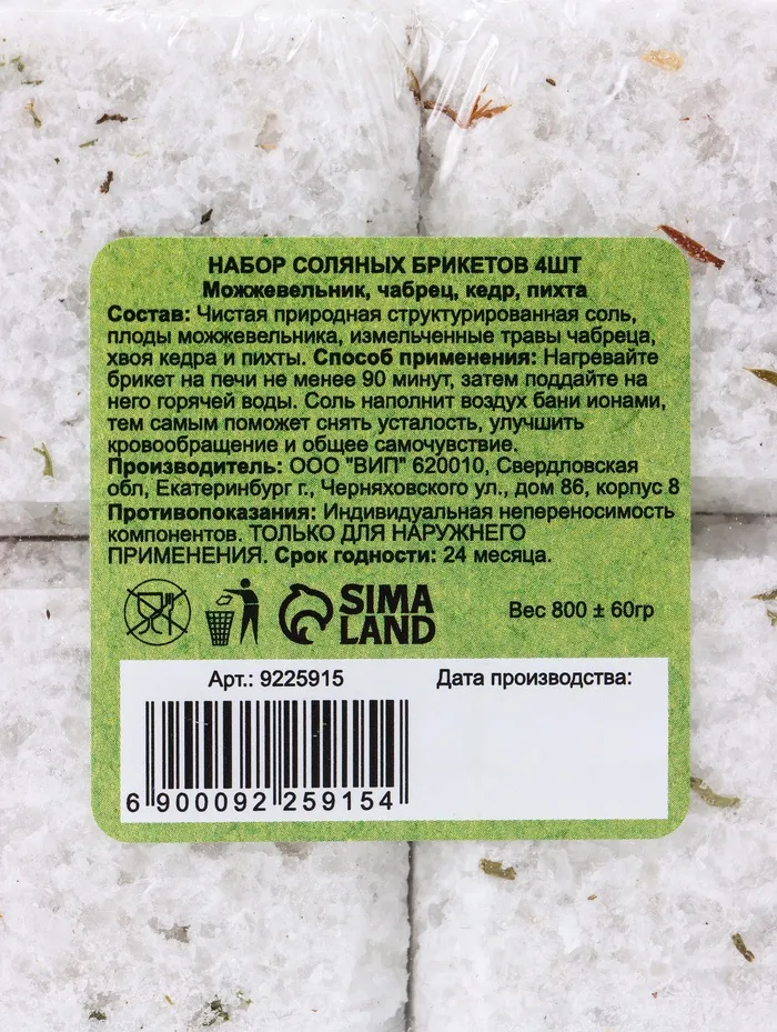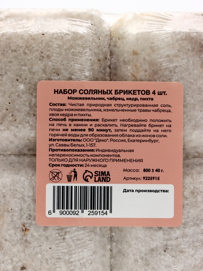 Примечание: Соляные брикеты не содержат отдушек и состоят только из натуральных трав.