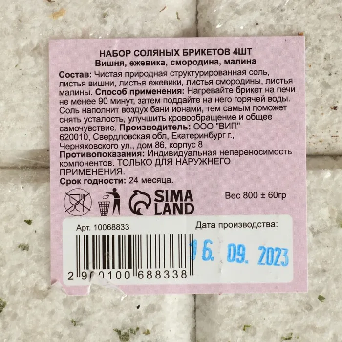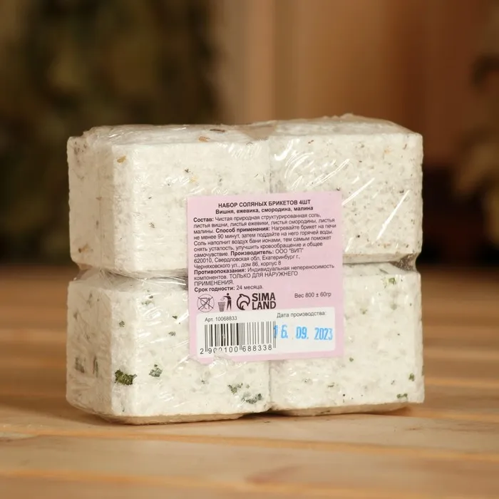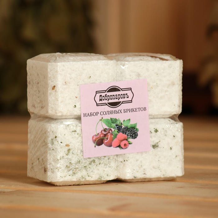 Соляной брикет — набор 4 шт. «Вишня, Ежевика, Смородина, Малина» — это ароматное приглашение в мир ягодного удовольствия и банного расслабления. Каждый брикет весом около 200 г сочетает в себе очищающую силу природной соли и яркий фруктово-ягодный букет:
