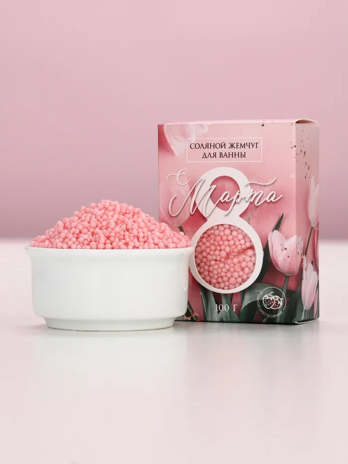 Соляной жемчуг для ванны 100 г «С 8 марта!», ягодный аромат, Чистое счастье — Характеристики