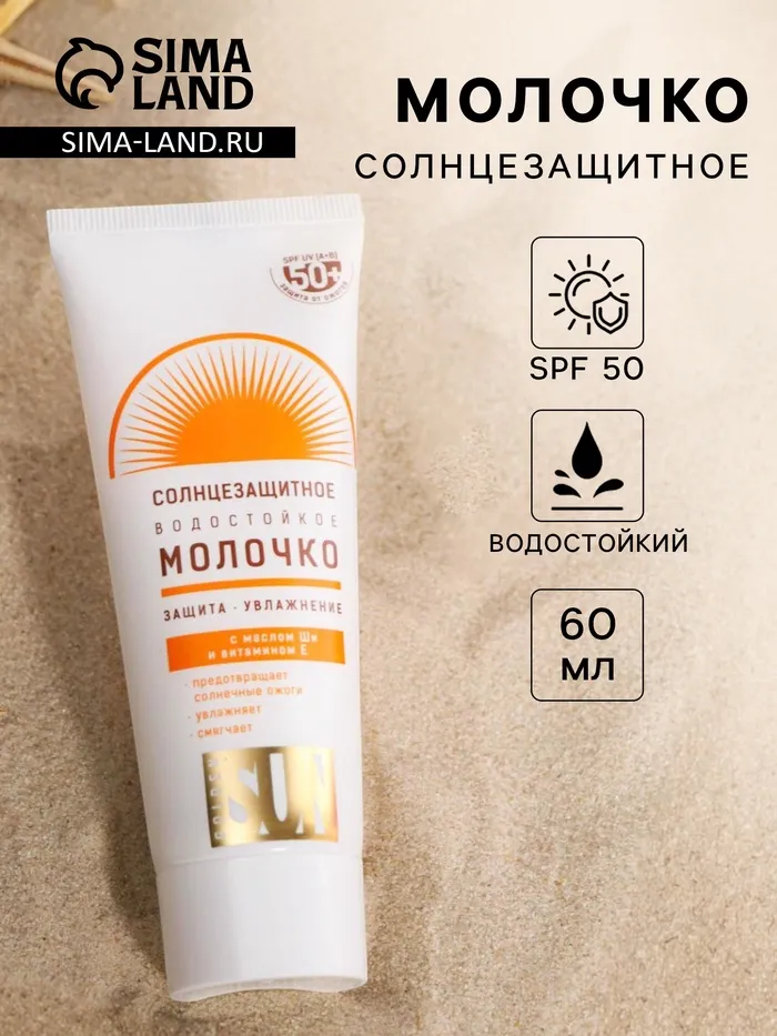 Солнцезащитное водостойкое молочко "Golden Sun", SPF-50+ UV (А+В), 60 мл — Характеристики