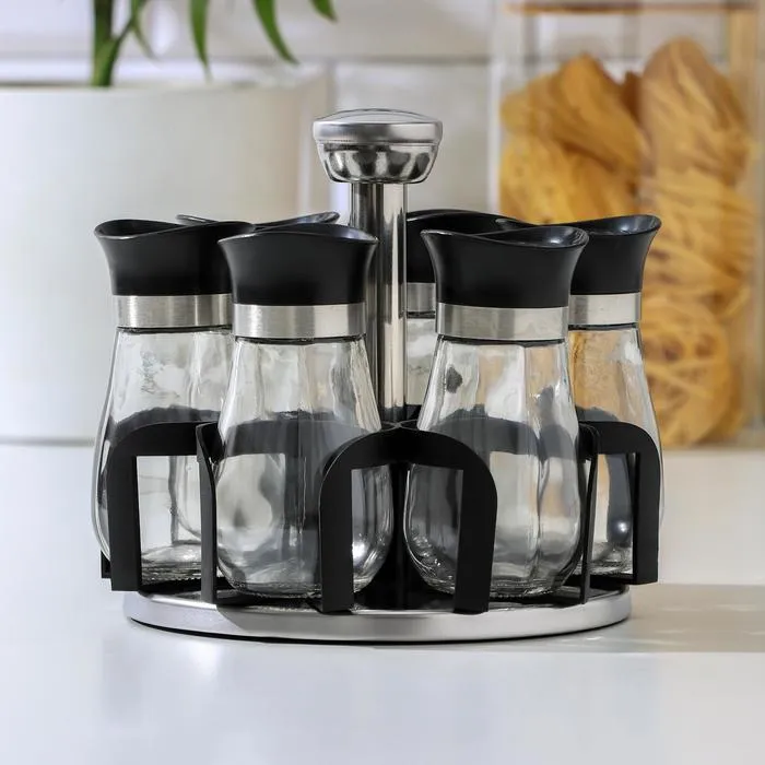 Набор для специй на подставке «Сияние», 5.5×11 см, 6 шт., стекло