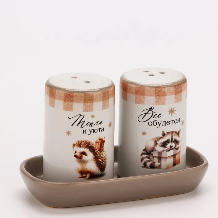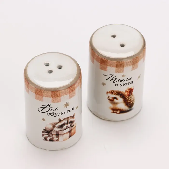 Солонка и перечница «Зимние зверята», 12×6.5×7 см, ручная работа — Характеристики