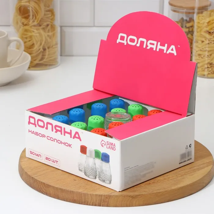 Солонки Доляна «Глория», 50 мл, 4.5×8 см, набор 20 шт., стекло, МИКС — Характеристики
