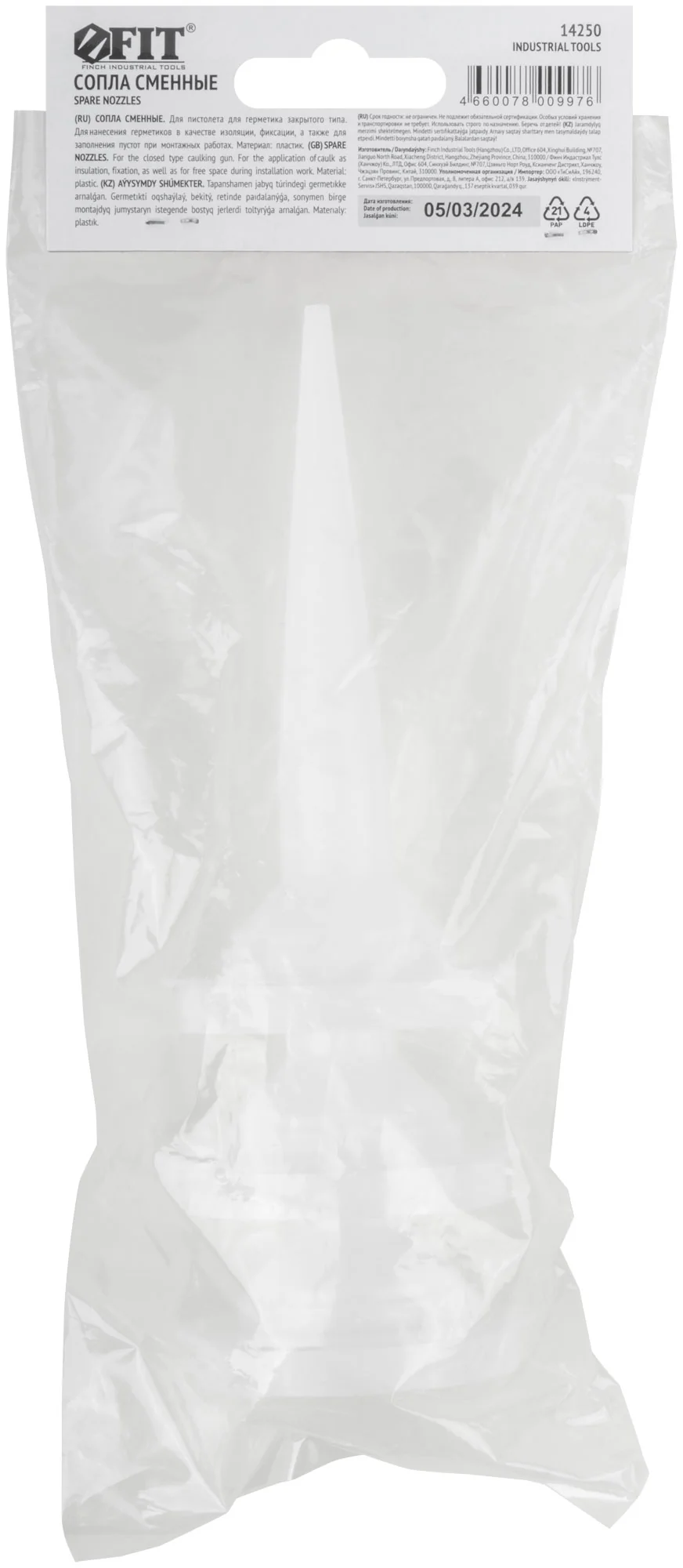 Сопла изготовлены из прочного пластика, что обеспечивает долговечность и надежность при работе. Упакованы в удобный полиэтиленовый пакет с подвесом, их легко хранить и транспортировать.