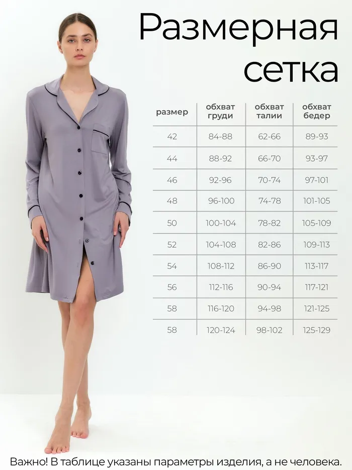 Сорочка ночная женская MINAKU: Home collection, серая, размер 48 — Характеристики