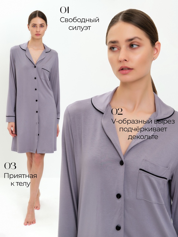 Сорочка ночная женская MINAKU: Home collection, серая, размер 48 — Характеристики