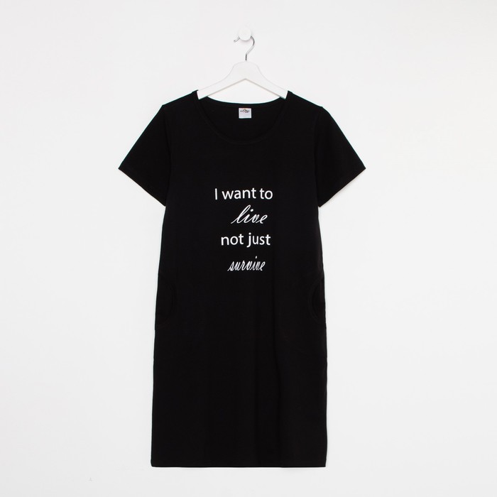 Сорочка ночная женская Ohana market, чёрная, принт LIVE, размер 46 — Характеристики