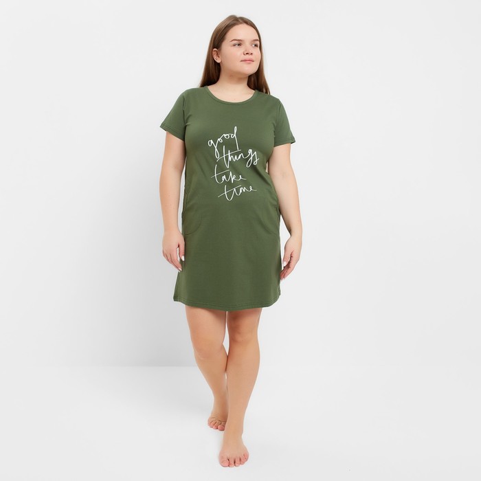 Сорочка ночная женская Ohana market, зелёная принт, размер 48