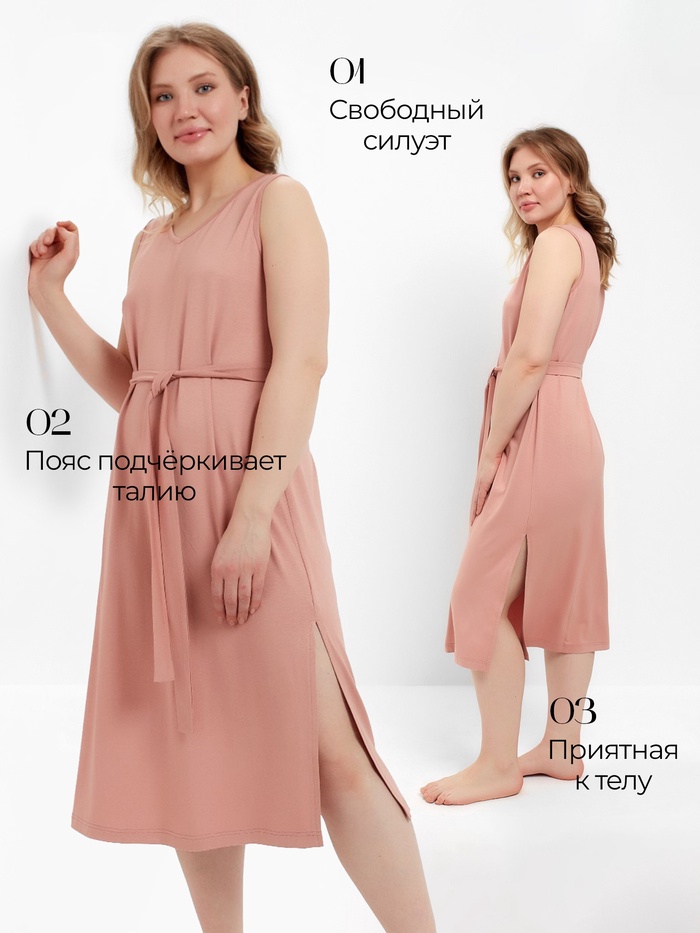Сорочка женская (миди) MINAKU: Home collection цвет тёмно-бежевый, размер 46 — Характеристики