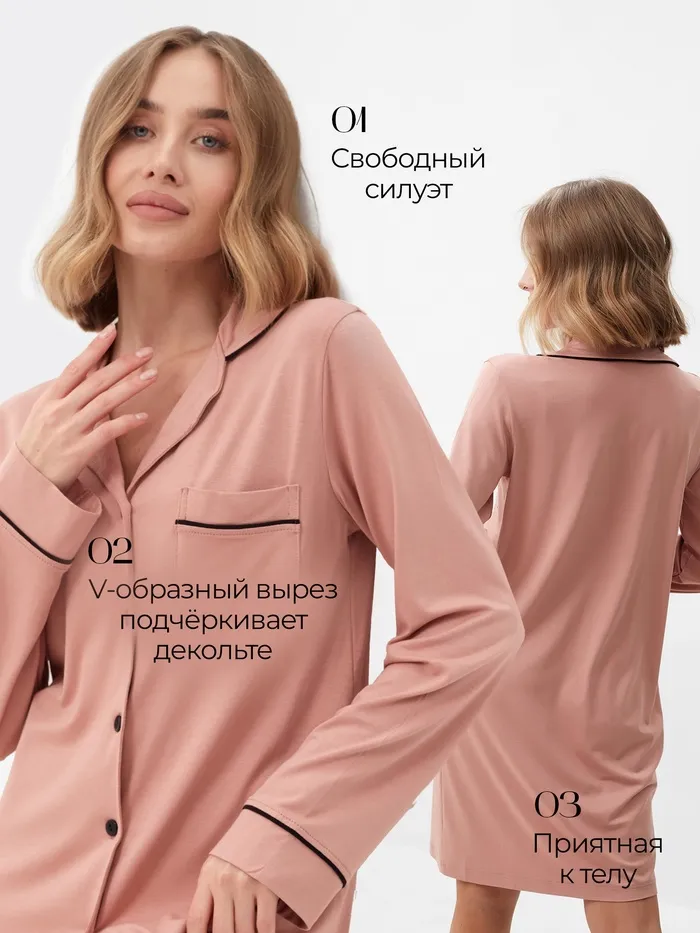 Сорочка женская MINAKU: Home collection цвет тёмно-бежевый, размер 42 — Характеристики