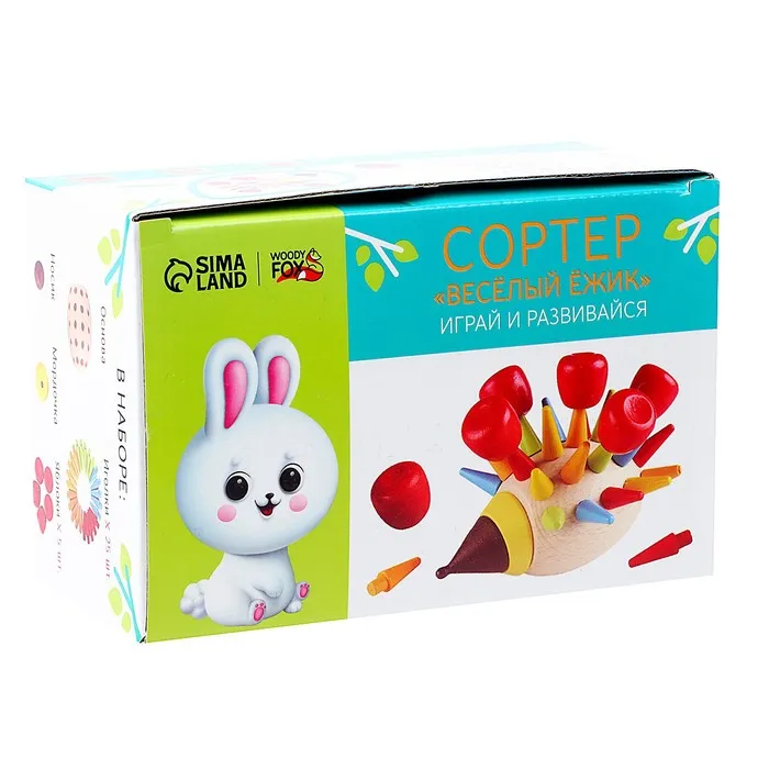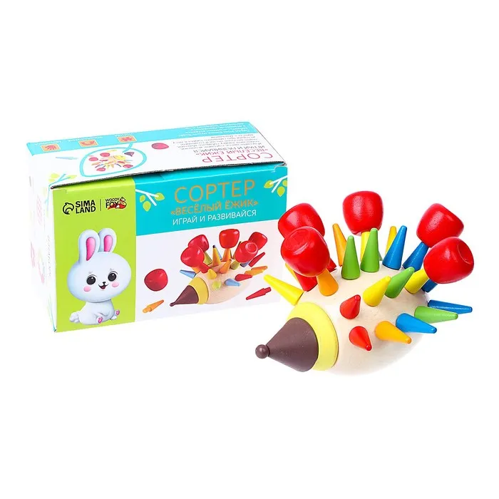 Деревянный сортер «Весёлый ёжик» — это увлекательная развивающая игра для малышей от 3 лет. С помощью этого набора ребёнок сможет собирать ёжика, сортировать цветные иголки и учиться считать, осваивая базовые навыки в игровой форме.