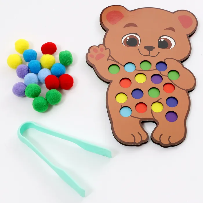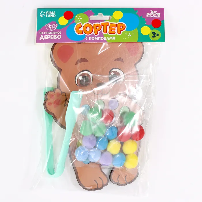Деревянный сортер «Мишка» с помпонами и пинцетом — это увлекательная и полезная игрушка для малышей от 3 лет. С её помощью ребёнок учится сортировать, считать и развивает важные навыки, такие как координация и мелкая моторика. Играя, малыш погружается в мир ярких цветов и интересных заданий, которые стимулируют его воображение и внимание.