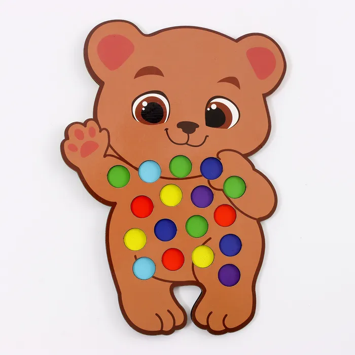 Игрушка сочетает в себе простоту и функциональность. Она помогает ребёнку учиться через игру, развивая логику, внимание и творческое мышление. Яркие цвета и приятная текстура помпонов привлекают внимание, а деревянная основа делает игрушку долговечной. Это идеальный выбор для родителей, которые хотят, чтобы их малыш играл с пользой и удовольствием.