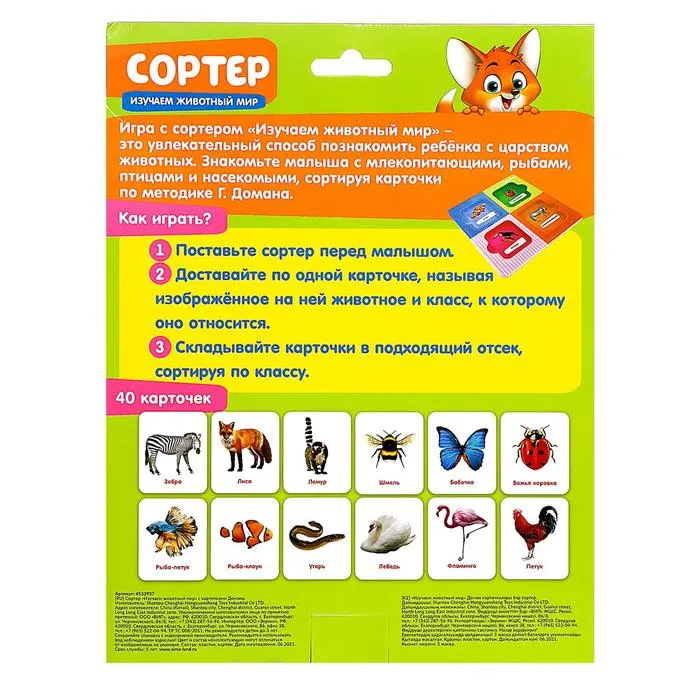 Сортер «Изучаем животный мир» с карточками Домана — Характеристики