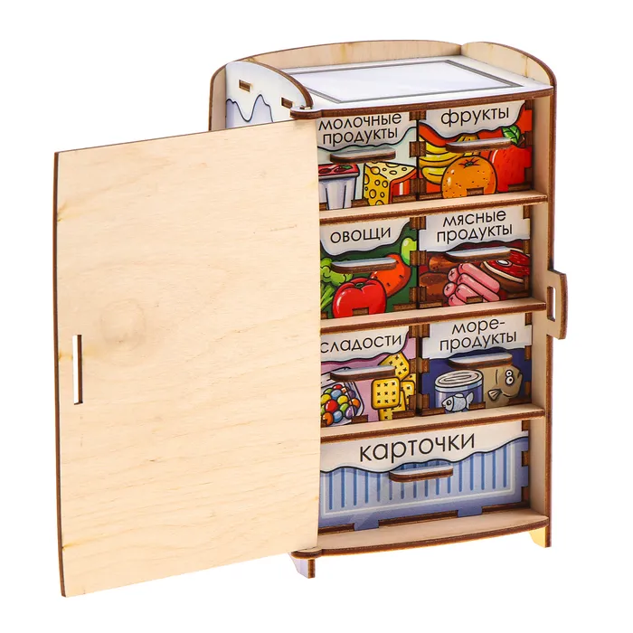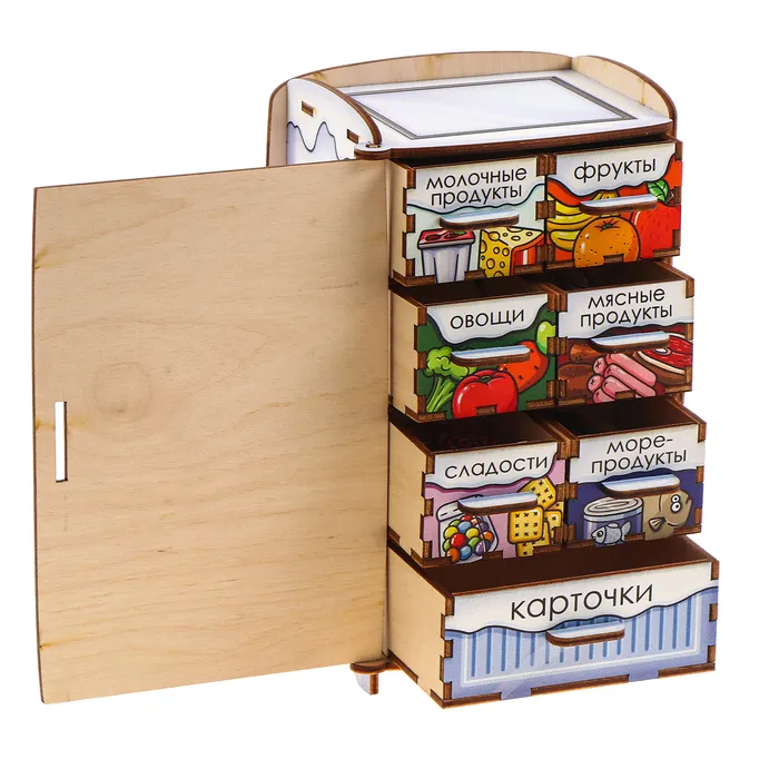 Деревянный сортер «Холодильник» — это увлекательная игра для детей от 3 лет, которая помогает освоить понятия логики, счёта и организации. Компактность и разнообразные игровые механики делают его идеальным выбором для домашних игр или занятий в детском саду.