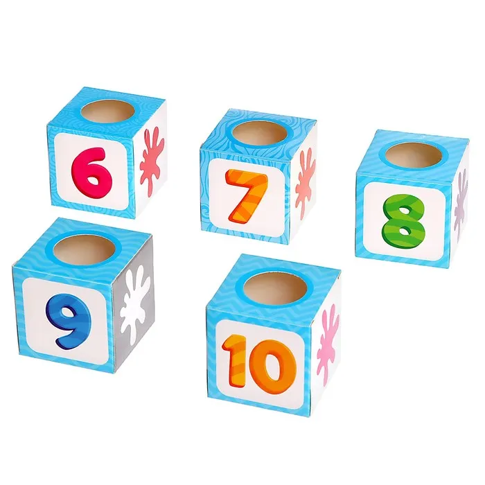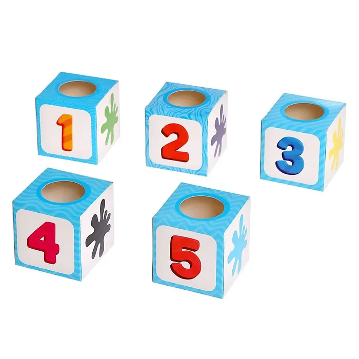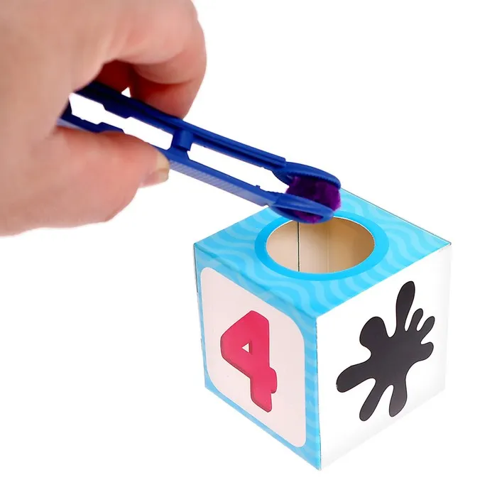 - Следите за тем, чтобы ребёнок клал бомбошки того же значения и цвета, что и цифра на кубике-сортере.